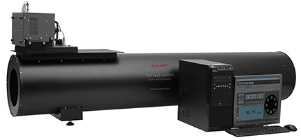 TVT测试站是一个可变光强度图像投影系统,其可将一些标准靶标的图像投影到被测试的电视像机。 被测试的电视像机会生成投影畸变的靶标图形,进而进行评估由相机产生的图像质量并测量其重要特征参数。 TVT测试系统由以下模块组成:DAL系列校准光源,靶标组,旋转靶轮,可交换透射/反射式平行光管,PC,图像采集卡,TAS-V软件,OS平台等。 建议使用TVT测试系统测试用于中/远距离监视类型的VIS-NIR像机。 TVT测试系统可以提供多种版本,针对经过测试的VIS-NIR相机类型(白天,夜晚,白天/夜晚)和不同相机设计不同应用而进行了优化。